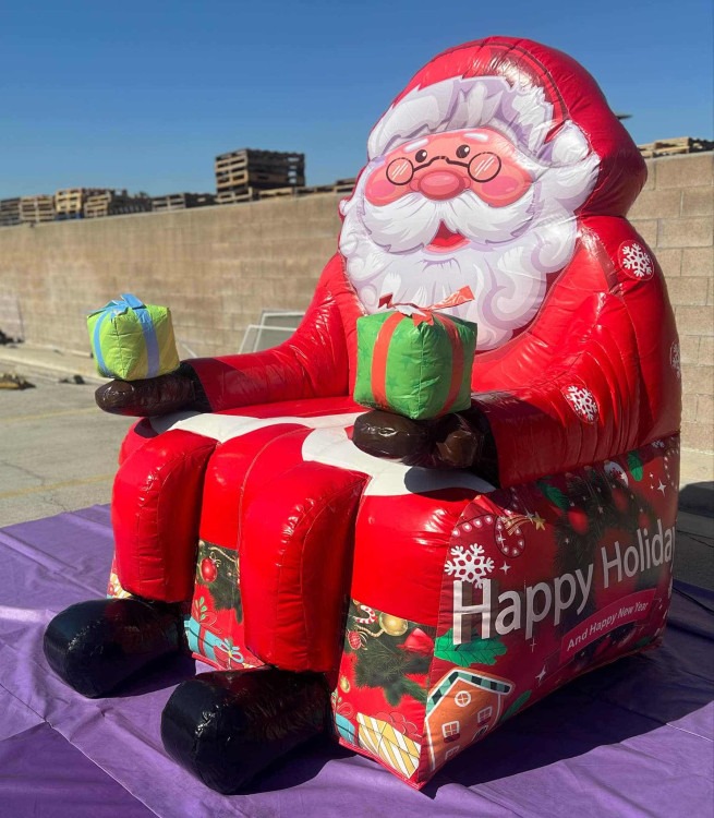 Bring the magic of the North Pole to your home or event with this oversized Santa inflatable chair – because nothing says Christmas like sitting on Santa's lap (or in this case, his entire chair)!